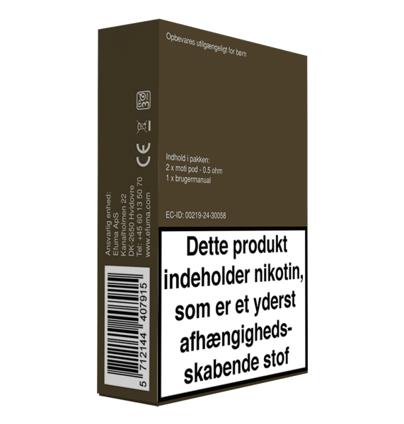 Type: Udskiftelige pods med indbygget 0,5 ohm coil til Moti Play enheder
